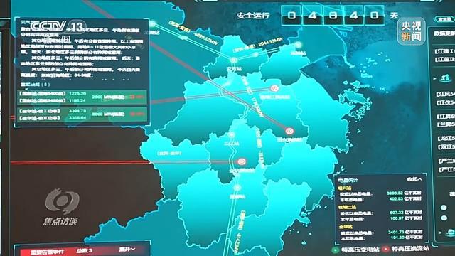 国网浙江超高压公司生产指挥中心,大屏幕上实时看到的红色和绿色的线路,正是宁夏、青海、四川等“外援”小伙伴们的电力在源源不断送到浙江。