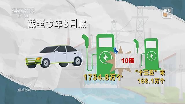 目前,全球有一半以上的新能源汽车行驶在中国,它们一年的充电量预计与三峡电站的年发电量相当。截至今年8月底,我国已经建了1734.8万个充电基础设施,是“十三五”末的10倍。