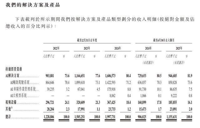 公司称,于往绩记录期间,公司产生的收入主要来自AI辅助驾驶系统、AI车队作业管理系统及视频设备。2024年6月,公司开始从AI大模型系统产生收入,AI大模型系统主要通过公司的云平台以软件形式交付。