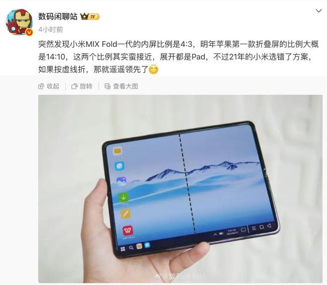 今天,博主@数码闲聊站 的一份爆料中也提到了相关的产品细节信息,即“明年苹果第一款折叠屏的比例大概是14:10”。