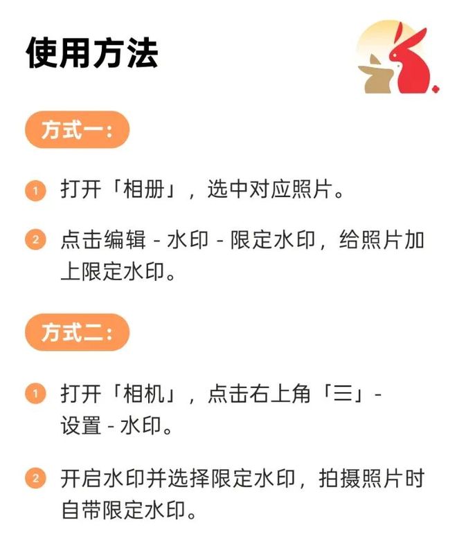 具体使用方法为,打开「相册」选中对应照片,点击编辑 - 水印 - 限定水印,给照片加上限定水印。