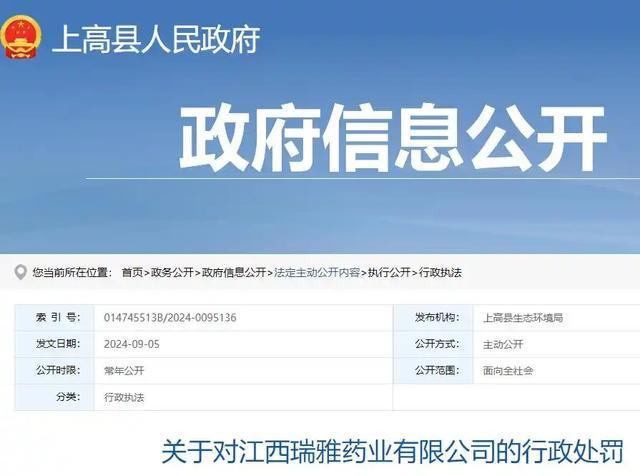江西瑞雅药业有限公司一份宣传材料显示,公司原为上高县瑞雅精细化工有限公司,是一家专注于医药中间体、原料药、精细化学品开发、生产和销售的高科技化工企业。